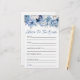 Dies ist ein dutziger Blue Floral Advice für das Bride Brautparty Spiel. Ratschlag für die Braut - Schreiben Sie sinnvolle Worte des Ratschlags an die Braut zu sein!