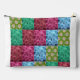 Handgefertigtes Blumenbettmuster mit lebendiger Patchwork-Blüten in Blau, Pink und Grün