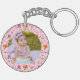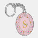 Blumenbienen und -Blume Muster rosa Monogramm Schlüsselanhänger