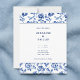 Mit dieser eleganten blauen und cremefarbenen, blumengeschmückten Save the Date-Karte können Sie Ihre Hochzeit stilvoll verkünden. Auf der Vorderseite der Karte befindet sich ein Vintag inspiriert Blumenrahmen, der die notwendigen Einzelheiten der Hochzeit in klassischen SerifenSchriftart umschließt. Das zeitlose Design in Blau- und Cremetönen verleiht dem Hotel eine raffinierte Touch der Eleganz, die sich perfekt für eine Hochzeit oder eine Hochzeit eignet. Die Rückseite ist vollständig mit dem gleichen Blumenmuster bedeckt, wodurch ein zusammenhängendes und luxuriöses Aussehen entsteht. Diese Save the Date Karte Set den Ton für einen wunderbar eleganten Hochzeitstag und lädt Ihre Gäste ein, ihre Kalender stilvoll zu gestalten.