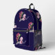 Blumenblau w/Name Druckknopfdruck Nähtasche Bedruckter Rucksack