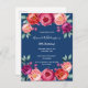 Eine elegante Einladungskarte für eine 50. Geburtstagsparty (oder jedes Alter). Mit zeitgenössischem Rosa, lila und in Rose goldfarbenen Blume, Blumen als Dekoration. Ein schicker marineblauer Hintergrund. Der Name wird mit einem weißen handgeschriebenen Stilskript geschrieben.