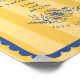 Line Art blauen Blumenbilder und handgezeichnete, geschliffene Grenze mit blauem Text über gelb gestreiften Hintergrund.