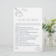 Dieses Design zeichnet sich durch eine atemberaubende Mischung aus eisiger Blues und zarten Blumen aus. Elegante Schriftart und botanische Details bringen eine Touch von natürlicher Schönheit, und es ist ideal für eine gemütliche und dennoch raffinierte Ansammlung, die die Braut zu sein.