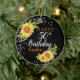 Ein glamouröser Geburtstagsschmuck. Dieses wunderschöne Ornament besticht durch die türkisfarbenen, rustikalen Sonnenblumen und die stacheligen Lichter auf schwarzem Hintergrund. Kann für jedes Alter und personalisiert durch Änderung des Namens angepasst werden. Ein ideales Geburtstagsgeschenk für Mutter, Mutter, Großmutter und viele andere