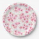 Diese Papierplatte ist in einem schönen rosa Blütendruck dargestellt. Passen Sie dieses Objekt an oder kaufen Sie, wie es ist. Stock Print freepik.com