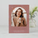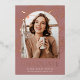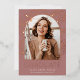 Die elegante Ankündigung des Foto Abschlusses mit einem vertikal oder portrait orientierten Foto in einem einzigartigen Gewölbe-Layout, auf einem staubrosa rosa Rosa-lila Hintergrund mit Rose Gold-Folie floral und botanisch besticht. Darunter erscheint "Absolvent", zusammen mit dem Namen Ihres Absolventen und der Schule oder Uni. Fügen Sie der Rückseite eine persönliche Nachricht und ein zusätzliches Foto hinzu.