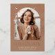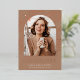 Die elegante Ankündigung von Foto Abschluss verfügt über ein vertikal oder portrait orientiertes Foto in einem einzigartigen Gewölbe, auf einem leichten Erdton Terrakotta Hintergrund mit Rose Goldfolie floral und botanischen Trim. Darunter erscheint "Absolvent", zusammen mit dem Namen Ihres Absolventen und der Schule oder Uni. Fügen Sie der Rückseite eine persönliche Nachricht und ein zusätzliches Foto hinzu.
