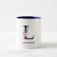 Tasse für den zweitönigen Kaffee in Aquarellfarben Floral Letter L Navy Blue Monogram