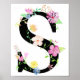Aquarell Blumenbrief S Poster vom Aquarellmaler Cheng Jing. Der Hintergrund des Letter S ist schwarz mit Aquarellfarben-Blume und dekorativen Blätter und Beeren. Es ist perfekt für Kinderzimmer-Kunst, Teen Zimmer Dekor und mädchenhafte Geschenke.