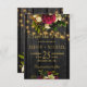 Rustikale, elegante Hochzeitskarte Save the Date auf dunkelbraunem Holzhintergrund mit Twinkellichtern und roten bordeauxfarbenen und Elfenbeincreme-Blume mit grünen Blätter und Blattwerk. +++++++++++ Einfach mit Ihren Daten personalisieren! ++++++++++ Sie können wählen, ob Sie den Schriftart und die Farbe des Buchstaben ändern möchten. ++++++++++++++++++++ Die Einladung ist für Herbst- oder Winterrustikland geeignet | Bauernhaus oder Weihnachten Thema Blumenhochzeiten.
