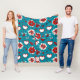 Diese Decke ist mit einem lebendigen und spielerischen Coquette-Blumendesign mit einem aquamarinen Hintergrund mit großen rot-weißen Blume, Herzen, Schmetterlingen und verstreuten kleineren Herzen in passenden Farben verziert. Das fröhliche Muster verbindet eine moderne Ästhetik mit einem romantischen Ambiente und macht es zu einem perfekten Statement für Zuhause-Dekoration. In der unteren Mitte befindet sich ein anpassbarer Monogramm-Bereich, in dem Initialen personalisiert werden können, um eine durchdachte, einzigartige Touch hinzuzufügen. Diese Decke eignet sich ideal zum Geschenken oder zum gemütlichen Beisammensein und verbindet Komfort mit individuellem Charme.