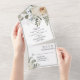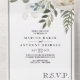 Ein wunderschönes Bouquet mit cremefarbenen Aquarellfarben, Eukalyptus und Farne machen eine kühne Aussage an der Spitze dieser wunderbaren Hochzeitseinladung. Die Vor- und Nachnamen der Braut und des Bräutigams werden verwendet. Zwei serifenförmige Gesichter verleihen dieser Einladung ein modernes, elegantes Aussehen. Alle wichtigen Texte sind editierbar, damit Sie sie nach Ihren eigenen Bedürfnissen anpassen können. Diese Creme und Salbei Farben werden für Ihre Herbsthochzeit großartig sein.