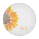 Dieses botanische, blumengeschmückte Brett ist mit einer gelben, wasserfarbenen Sonnenblume geschmückt. Einfach anpassbar mit Ihrem Namen und Initial. Ideal für die Hauswärme und personalisierte Geschenke. Original Wasserfarbe © Michele Davies.
