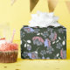 Blaue, lila und weiße Blume auf schwarzem Hintergrund