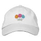 Diese mit einem Blumenmuster bestickte Kappe ist ideal für den Strand, den Golfplatz oder das Boot, um nur einige zu nennen. Sie verfügt über einen Stoffgurt und einen antiken Rutschverschluss aus Messing mit einem in den Sack eingesteckten Kellerhahn, damit es für jeden gut passt