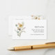 Karte mit Blumendetails. Diese elegante, skurrile Wildblume-Hochzeitskunstkarte mit handbemalten Aquarellfarben, rosa, staubblau und schlaugrün gepressten Blume mit schwarzem Text auf weißem Hintergrund. Auf der Rückseite befindet sich ein QR-Code zur Personalisierung. Finden Sie passende Artikel in den Einladungen zur Hochzeit der Wildblume | Sammlung gepresster Blume.