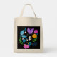 Tragen Sie mit dieser blühenden Totentasche einen farbenfrohen Schlag! Mit einer spielerischen Mischung aus handgezeichnet Blume, Blätter und skurrilen Doodles bietet dieses Design einen schönen Pop vor dem dunklen Hintergrund. Ideal für den Alltag, ob zum Shoppen, Büchern oder lässigen Ausflügen, kombiniert diese Tasche Stil und Funktion. Ein lustiges Accessoire für alle, die helle, fröhliche und künstlerische Lieben haben.