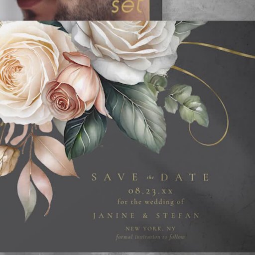 Diese Hochzeitssuite mit ihren üppigen, dramatischen Blumen von cremefarbenem Weiß bis Rosa, goldfarbenen Akzenten und wunderschönen, kohlegrauen Aquarellbildern schafft eine elegante, romantische Atmosphäre, die den Gästen einen kleinen Eindruck von dem vermittelt, was sie an ihrem großen Tag erwarten können. Dieses elegante Foto-Kulisse, hier auf einem optionalen dunkelkohlegrauen Hintergrund dargestellt, bietet eine Vorlage, um einfach Ihre Namen und Hochzeitstag hinzufügen. Suchen Sie den ID1022 um alle Produkte in dieser Hochzeitssuite zu sehen.