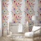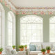 Die pastellfarbenen Blumenstreifen, die ganze Wand oder die obere Grenze