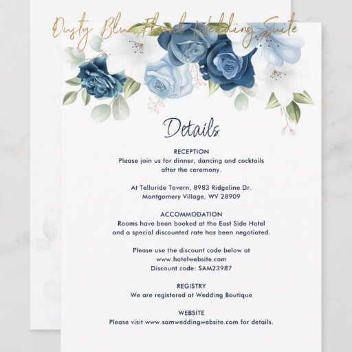 Blumendusty Blue QR-Code bei einer Hochzeit Einladung