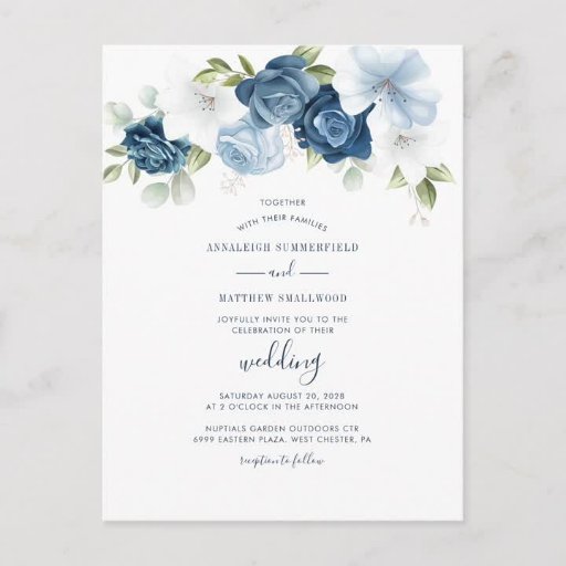 Blumendusty Blue Wedding Probe Dinner Einladung