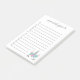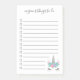 Niedlich Listennotizblock mit einer praktischen KaroBoxliste, Ihr Name tun in einem hübschen Kalligraphieskript und in der unteren rechten Ecke ein entzückender Unicorn, der eine Blumenkrone mit den rosa, lila und blauen Blumen trägt.