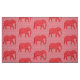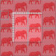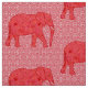 Digitale Grafik der Mischmedien eines Elefanten gegen eine Arabeske deckte Hintergrundgewebe - Blumenmuster in den Schatten von tiefrotem zum korallenroten Rot mit einem korallenroten roten und weißen Hintergrund mit Ziegeln