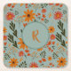 Untersetzer mit Blumenmuster. Digitales zeichnend Muster mit Blume in warmen Tönen auf Salbei grün. Personalisieren Sie den Untersetzer Muster mit einem benutzerdefinierten Namen.