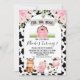 Blumenfarm mit Kuh Print und Arch Geburtstag Einladung Niedliche Farm Geburtstagsladen für ein kleines Mädchen mit einigen niedlichen Bauerntieren, fett schwarzen Kuh-Print Muster, rosa blühende Rose und ein Holzbanner. Ideal für ein Party mit dem Thema Schwarz, Weiß und Rosa für verschiedene Altersgruppen.