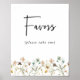 Blumenfavoriten Poster. Dieses hübsche, blumengeschmückte Poster besticht durch atemberaubende, handbemalte Aquarelltöne, staubblaues und gelb gepresste Vintage Wildblumen mit schlängelgrünen Botanicals, die als hübscher Rahmen angeordnet sind. Finden Sie passende Produkte in der eleganten Pastel Watercolor Wildblume Wedding Collection.