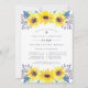 Unsere Blumenfelder sind die erste Einladung zur heiligen Kommunion, die die Kommunion Ihrer Tochter mit Haufen von gelben Aquarellsonnenblumen, blauen und lila Knospen und grünem Blattwerk umgibt. Eine gute Wahl für Kommunionfeiern in rustikalen Outdoor- oder Landschaften. Umfasst Platz für die religiöse Zeremonie und Party oder Feiern, die folgen.