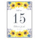 Auf den Country-Chic-Tischnummern finden Sie Haufen von gelben Aquarellsonnenblumen, grünen Blätter und winzigen marineblauen Knospen, die Ihre Tischnummer in rauchblaugrauem Blau umrahmen. Personalisieren Sie mit Ihren Namen und Hochzeitstermin, oder benennen Sie jeden Tisch für eine zusätzliche persönliche Touch. Design wiederholt sich auf der Rückseite. Koordiniert mit unseren Blumenfeldern rustikale Blumenzettel.