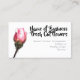 Eine schöne Singlerosa-Rosenknospe-Blume mit einem grünen Stamm erscheint auf der linken Seite dieser Karte und hat eine schwarze dekorative Schriftartschablone für Ihre Geschäftseinzelheiten.