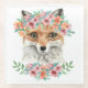 Dieses Ausrüstungsbeschreibungen Watercolorporträt eines Fuchses, der einen Halo der Blumen trägt.