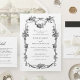 Blumenfranzösische Rose Vintage Schwarz-Weiß-Rahmen-Hochzeitsempfehlung