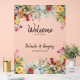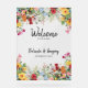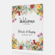 Ein Blumengarten und Bouquet-Blume. Dieses Blumenmuster im Frühling und im Blumengarten setzt sich aus verschiedenen Blüten wie Rosa, Rot, Blau, Gelb, Bordeaux und Weiß zusammen. Eine elegante botanische Illustration der Frühlings- und Sommernächte, ideal für jede Hochzeit. Dieses Blume-Illustrationsdesign schafft ein elegantes rustikales, blumengeschmücktes Landschaftsgefühl. Elegantes Hochzeitswillkommene Design mit modernen Elementen. Auch die passenden Hochzeitseinladungen und andere Schreibwaren sind verfügbar.