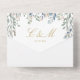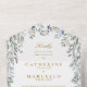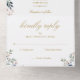 Alle in einer Hochzeitseinladung mit einer schönen Blumenkaskade, eleganter Goldtypografie und Monogramm-Initialen. Die Einladung enthält eine perforierte RSVP-Karte, die für Sie individuell adressiert oder links als leere Karte für die Handschrift der Adressdaten Ihres Gastes verwendet werden kann. Entwickelt von Thisisnotme©