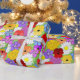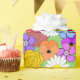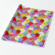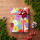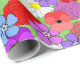 Dieses Verpackungspapier hat ein Frühjahrsdesign aus verstreuten Rose, Stiefmütterchen, Gänseblümchen und Ferkeln.