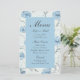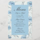 Fügen Sie Ihrer romantischen Hochzeit im Sommer oder Frühling eine anmutige Touch mit diesem blühenden Gartenmenü hinzu. Mit eleganten botanischen Details in Aquarellfarbe und sanften staubblauen Akzenten ist es perfekt für rustikale Empfänge, Abendessen im Freien und Vintage Chic-Feiern. Egal, ob Ihr Thema einen besonderen Charme, landschaftlichen Charme oder romantische botanische Romantik verspricht, dieses Hochzeitsmenü bringt feine Blumen, Frühlingsblumen und zeitlosen Stil in jeden Tisch.
