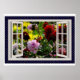Blumengarten, offenes Fenster, Dahlias Poster