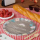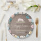 Auf dieser zauberhaften Papierplatte befindet sich ein springender rosa Hase auf einem rustikalen Holzboden, umgeben von Frühlingsfloralen/Blume. Personalisieren Sie es für Ihre Bedürfnisse. In meinem Geschäft finden Sie passende Produkte.