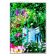 Ein wunderschönes digitales Gemälde aus einem Foto eines Blumengartens mit sommerlichen Blume, die die Stufen eines weißen Gazebo umgeben.