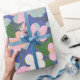 Ein hübsches Design pastellfarbener abstrakter Blume mit blauen Blätter im Hintergrund.