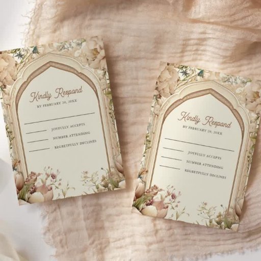 Erleben Sie Ihren Aufenthalt mit dieser eleganten Hochzeitsfeier, die mit schönen Pfauen und Vintagen Bögen aufwartet. Fügen Sie einfach Ihre Veranstaltungsdetails zu dieser einfach zu bedienenden Vorlage hinzu, um sie zu einer einmaligen Einladung zu machen.