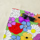Dieses Badetuch hat ein Spring Design aus verstreuten Rose, Stiefmütterchen, Gänseblüten und Falten.
