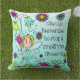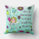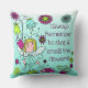 Ein niedliches und farbenfrohes Kissen im Freien mit einem blauen Himmelshintergrund mit vielen hübschen Blume und einer niedlichen Gartenfee und Ladybug mit einem Zitat, das immer daran denken, zu stoppen und zu riechen die Blume!