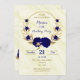 elegante romantische königsblaue Blumen und goldene Blätter botanischer Kranz-Luxus Geburtstagsfeier