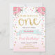 Ich finde es toll, Sie zum ersten Geburtstag Ihres Kindes einzuladen! Mit Rose Konfetti in rosa Minze und Gold.