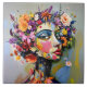 "Blumengeometrie" - Ein botanisches Portrait. Ein faszinierendes Treffen von mosaikartigem Design und üppiger Blumenpracht prägt dieses Werk. Der durchdringende Blick der Frau kontrastiert mit der Weichheit der Blüten und schafft ein Gleichgewicht zwischen Präzision und Chaos. Eine lebhafte Farbpalette aus Rosa, Gelb, Lila und Rot hebt die Verbindung zwischen Struktur und Bio hervor und liefert ein modernes, unvergessliches Portrait.